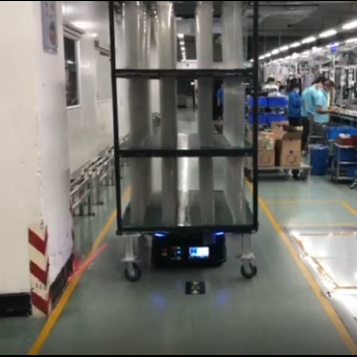 3C自主搬運AMRLED燈4條生產線。料儲為相應物料加工站位料車上的整車物料。AMR自動移入料車托盤并舉升,自動調整方向并將料車逆時針(參考)輸送到各產線物料投放站位;自動將托盤上的空料車舉升,逆時針(參考)繞行回到相應物料加工站位。