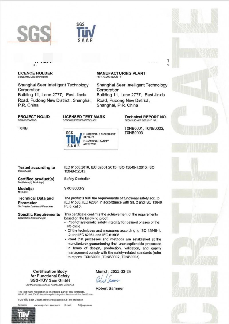 仙工智能 SRC-3000FS 由仙工智能自主研發(fā)的安全型 AMR 控制器,通過了 SGS TUV SAAR 功能安全認證。SRC-3000FS 集激光SLAM導(dǎo)航、功能安全于一體的,是目前唯一一個通過該認證的控制器產(chǎn)品。