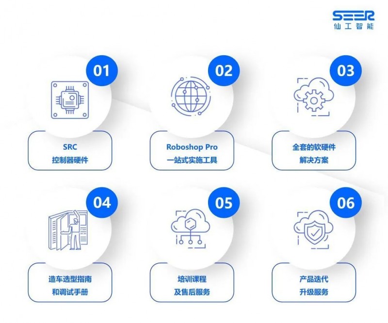 為了幫助客戶更輕松地實現(xiàn)打造 AMR 的需求,仙工能為客戶提供全套方案支持,方案中不僅是一臺 SRC 控制器,而且是涵蓋硬件、軟件、造車技術(shù)方案、選型及調(diào)試手冊、培訓及服務(wù)等全套技術(shù)服務(wù),消除一切造 AMR 的障礙。