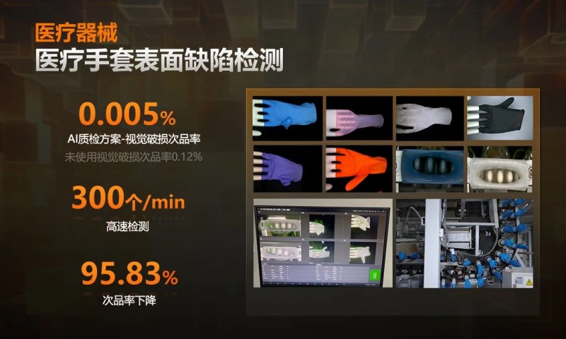 在器械領(lǐng)域醫(yī)用手套表面缺陷檢測的項目實踐中,海康機器人通過CCD面陣相機、AI深度學(xué)習(xí)等技術(shù),實現(xiàn)了綜合缺陷漏檢率小于十萬分之五的高精度檢測,大幅提高了產(chǎn)線良率、效率,降低客訴率。