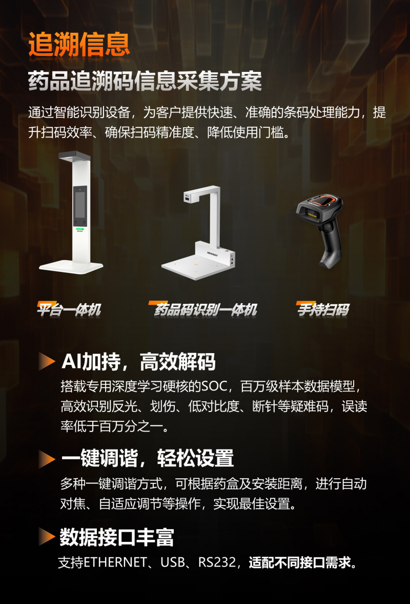 此外,海康機器人還積極響應(yīng)政策要求,針對藥品追溯碼應(yīng)掃盡掃的需求,推出藥品追溯碼信息采集方案,助力行業(yè)客戶提升掃碼效率、確保掃碼精準度、降低使用門檻。