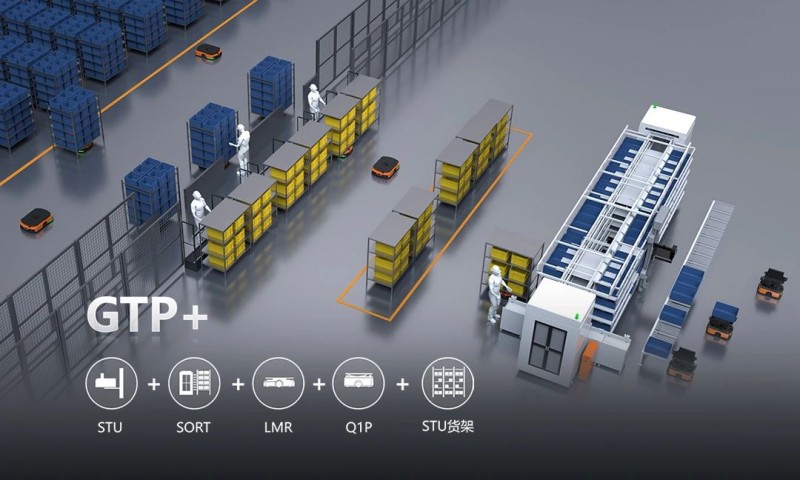 GTP+方案由GTP(Goods to Person,貨架到人方案)總揀、SORT自動分播、對接STU空滿箱交換、Q1P空滿箱轉(zhuǎn)運構(gòu)成,適用于醫(yī)藥樓層庫混合拆零揀選場景。