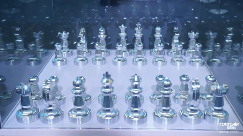 其中,結合中國博覽會的國際特色和廣州地標,還展示了由五軸聯動數控機床加工而成的廣州塔小蠻腰和國際象棋金屬模型,凸顯了五軸聯動數控機床的高難度異形精密零件加工工藝,讓觀眾眼前一亮。