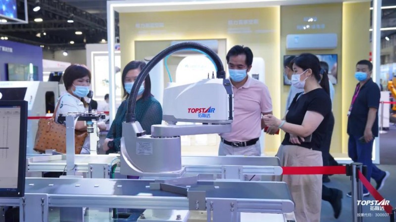 在展覽現場,拓斯達的五軸聯動數控機床和機器人視覺跟隨抓取和檢測系統吸引了許多觀眾和參展商的廣泛關注。